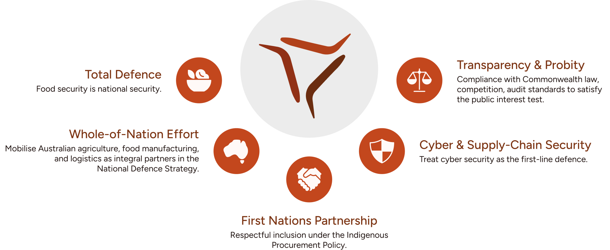 For key industry partners who can provide direct capability to our food security, national security and total defence. With the 6-Phase supply uplift program as a cornerstone, this tier is designed to make a difference in a volatile and uncertain operating environment, linking industry into national outcomes for national defence, ration supply and to build revenue capability.
